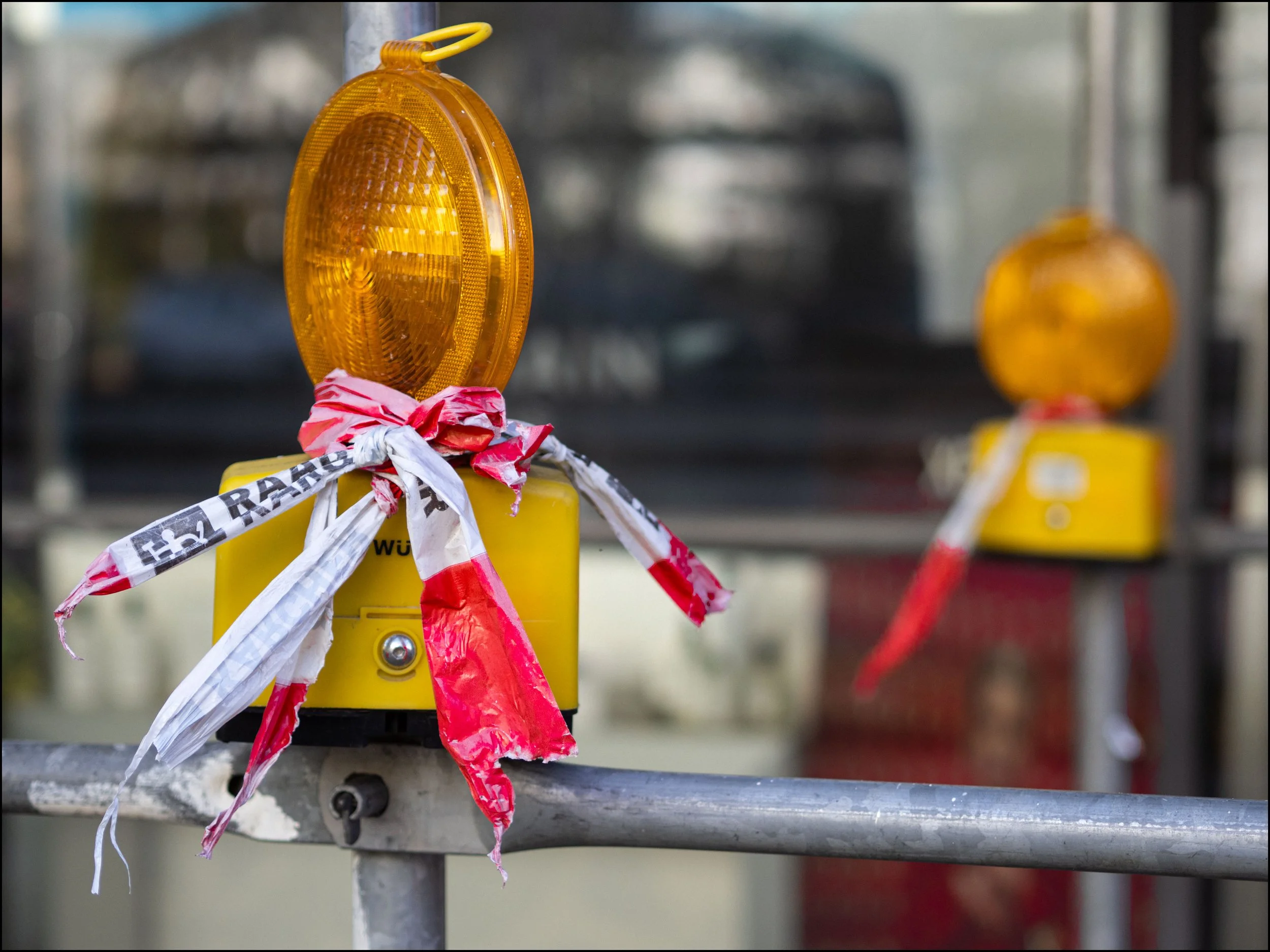 Wenig ist typischer für die Stadt als jene rotweißen Absperrungen, die daran erinnern, dass es hier nicht weitergeht. Überall begegnet man dem Flimmern der Warnfarben. Rot und weiß, weiß und rot. Absperrbarken, Schilder, Markierungen, Pfeile, Linien. Es ist, als hätte die Stadt eine eigene Grammatik entwickelt, eine Syntax aus Verbot und Vorsicht, aus Richtung und Grenze. Ihre Sprache ist die der Ordnung. Foucault hätte in diesem Alphabet eine Disziplinarmacht erkannt, die nicht befiehlt, sondern formt. Die rotweißen Zeichen sind kein tyrannisches Symbol, sondern freundlich, ein pädagogisches Instrument. Wir fühlen uns nicht unterdrückt, sondern geführt mit leichten Gesten, Begrenzungen zum eigenen Schutz. Sicherheit geht vor. Die rotweiße Barke ruft nicht Du sollst, sie flüstert Es ist besser so.