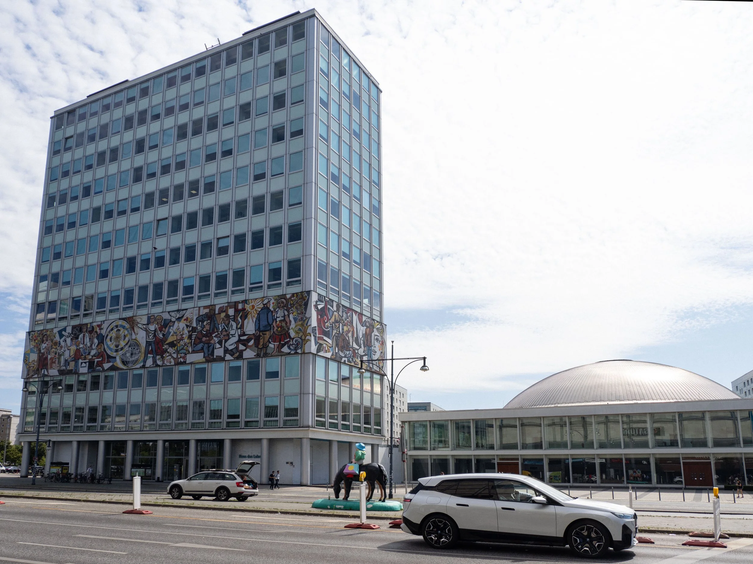 Bereits 1962 wurde gegenüber einem der verpönten Laubenganghäuser als einer der ersten Bauten der DDR nach dem Paradigmenwechsel auf der anderen Seite des Boulevards, nun Karl-Marx-Allee, das Kino Kosmos fertiggestellt. Mit über tausend Plätzen war es das größte und modernste Kino des Landes, heute eine Event-Location mit saniertem Outfit. Damals Peitsche und Zuckerbrot. Einerseits Bau der Mauer 1961, andererseits Vergnügungen fürs Volk.
