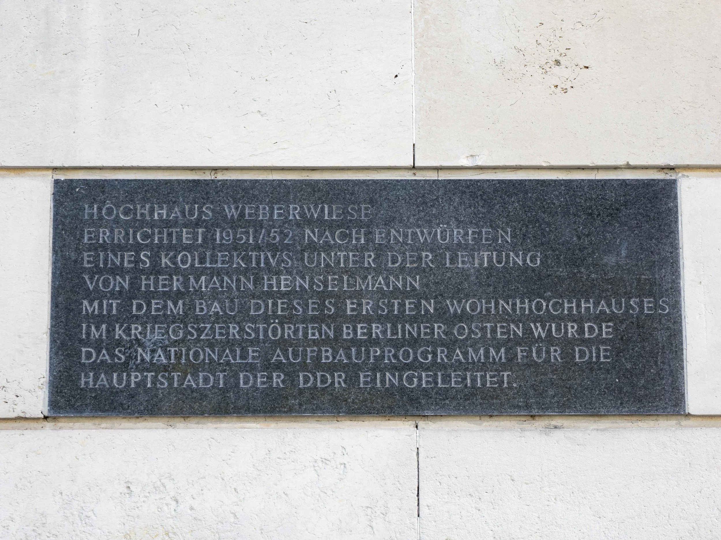 Hermann Henselmann fügte sich der politischen Windrichtung. Vom Neuen Bauen und der Tradition des Bauhauses war offiziell keine Rede mehr. Sein Hochhaus an der Weberwiese war als erstes Werk des Projektes Stalinallee Ausdruck der Neuorientierung.
